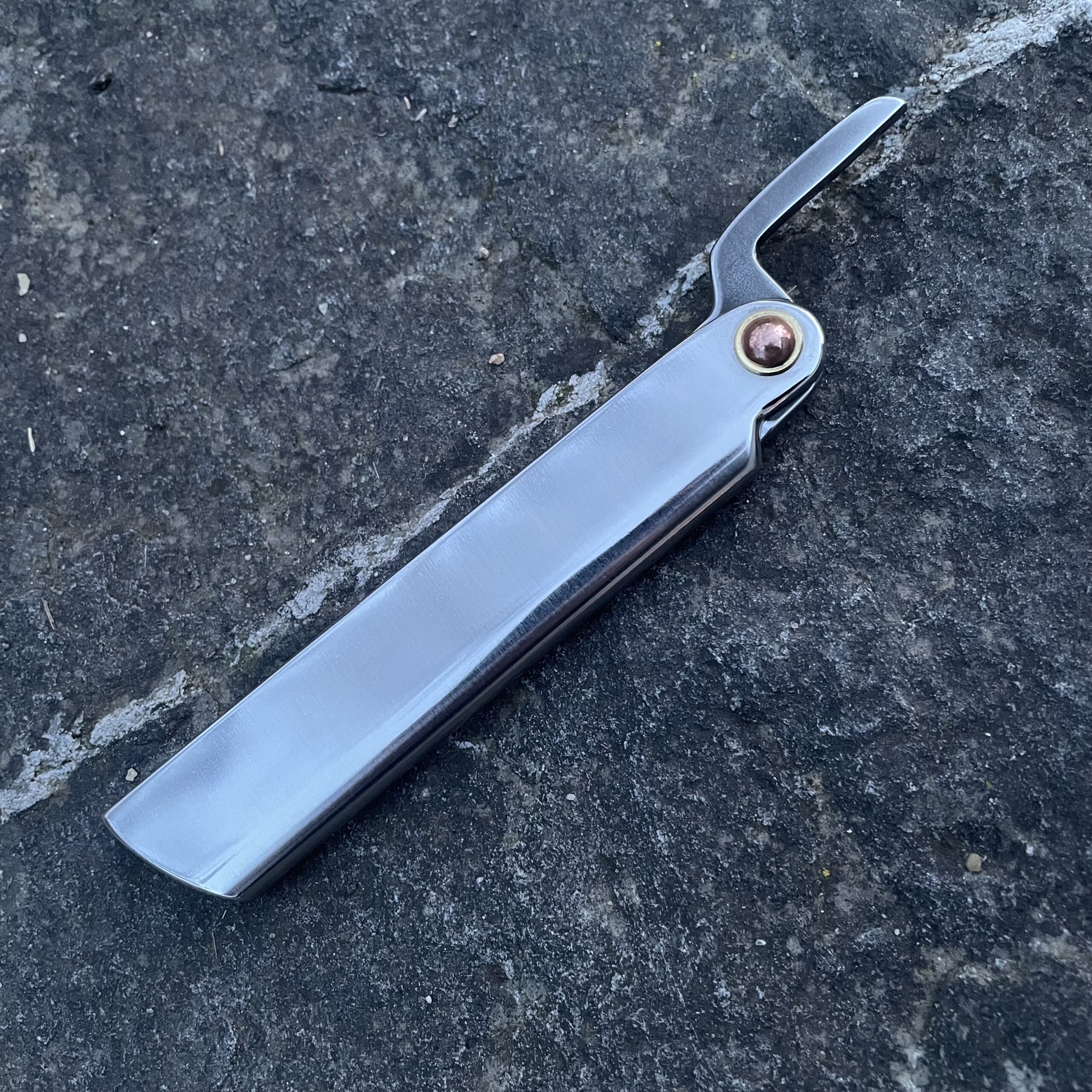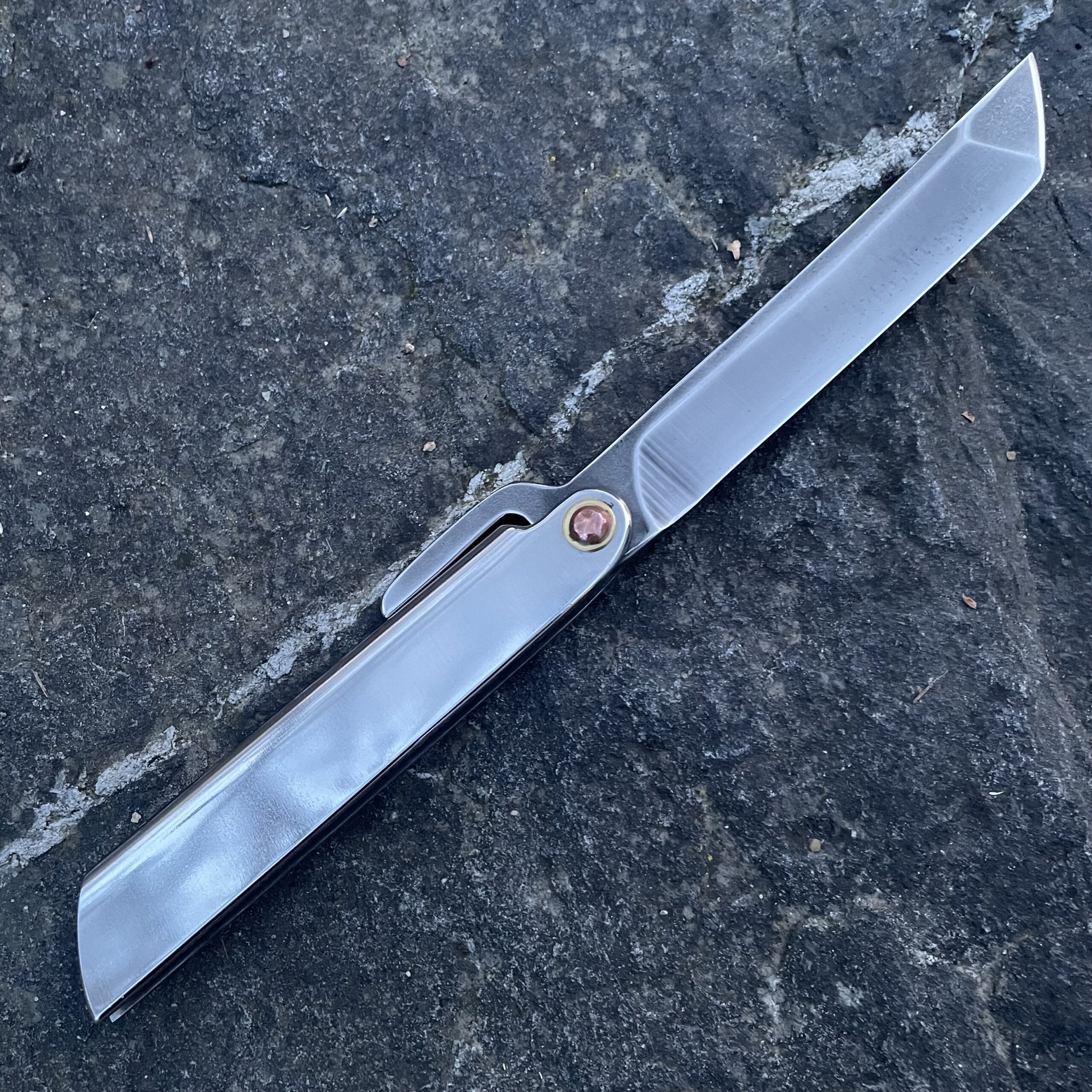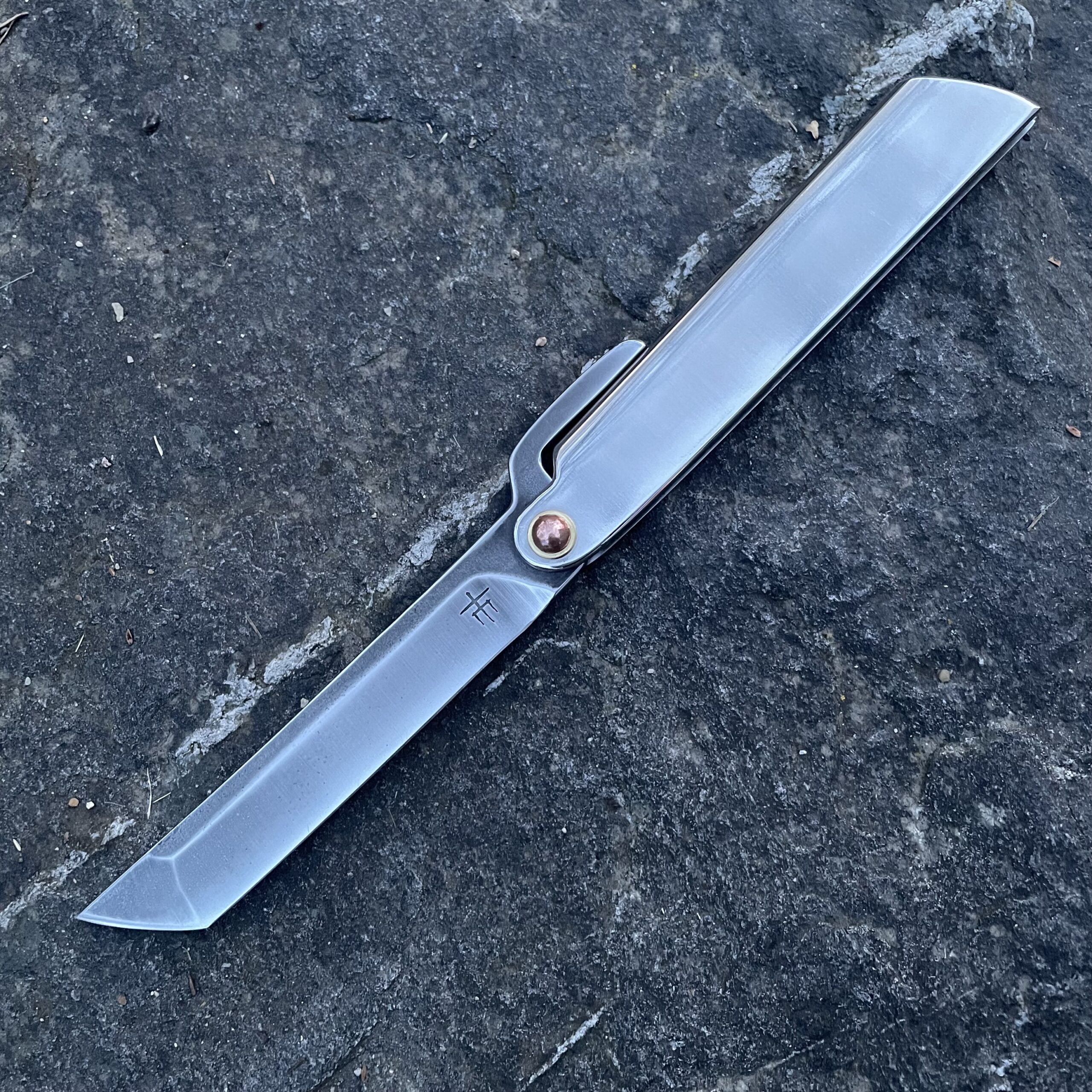 Friction Folder je moje verze tradičního japonského nože higo s velmi dlouhou historií. Čepel je vyrobena z nerezové oceli AEB-L o tvrdosti 60-61 HRC. Na konci čepele je trn, který zajišťuje, že se nůž při otevření a uchopení sám nezavře. Rukojeť je vyrobena z nerezové oceli.