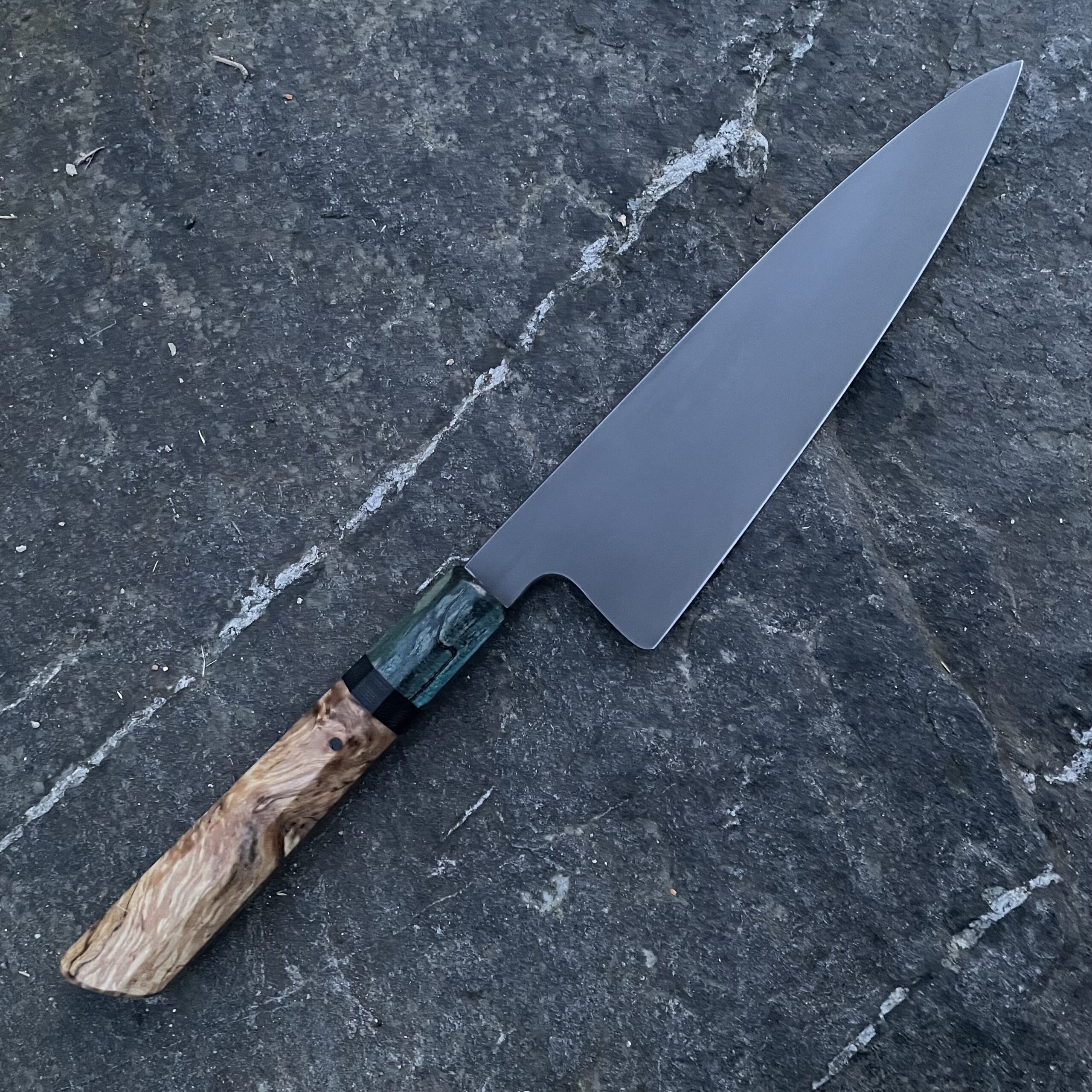Gyuto je japonský ekvivalent západního kuchařského nože a patří k nejuniverzálnějším nožům v kuchyni. Hodí se na krájení masa, zeleniny i ryb, a zvládne většinu běžných kuchařských úkonů. Čepel je vyrobena ze švédské korozivzdorné oceli AEB-L s vysokou tvrdostí 60–61 HRC. Díky tomu má vynikající a trvanlivé ostří. Nůž však není určený ke sekání kostí ani zmražených potravin – mohlo by dojít k poškození čepele.
