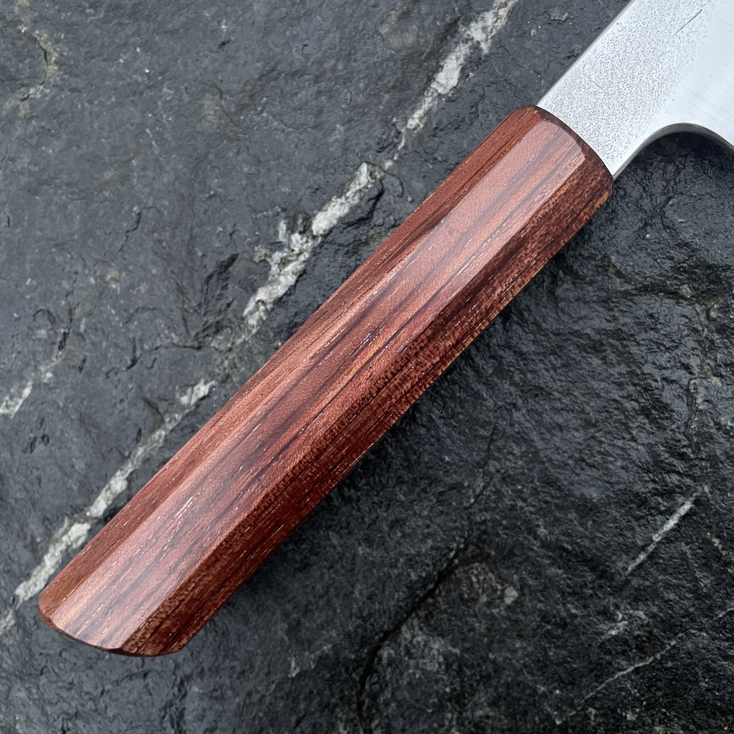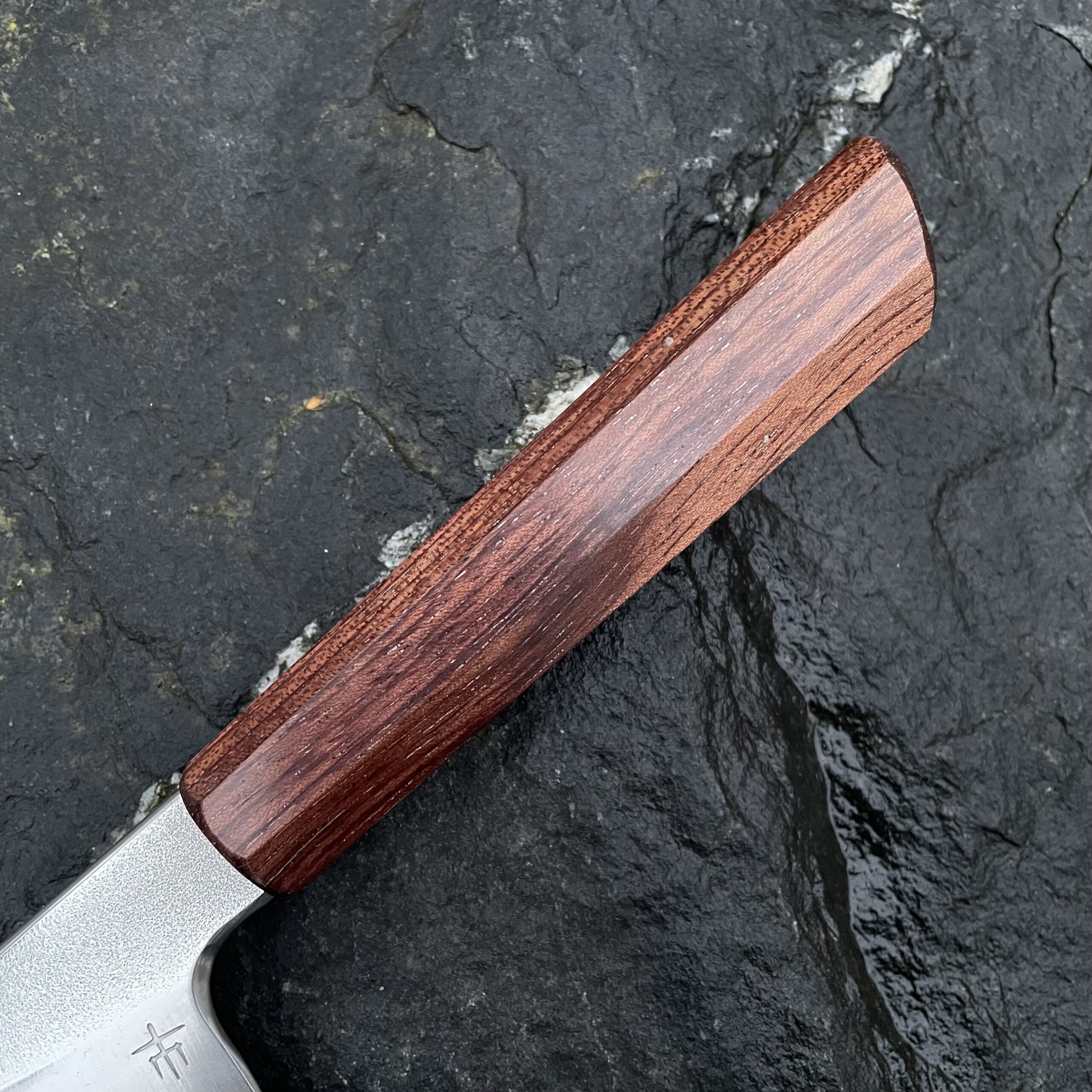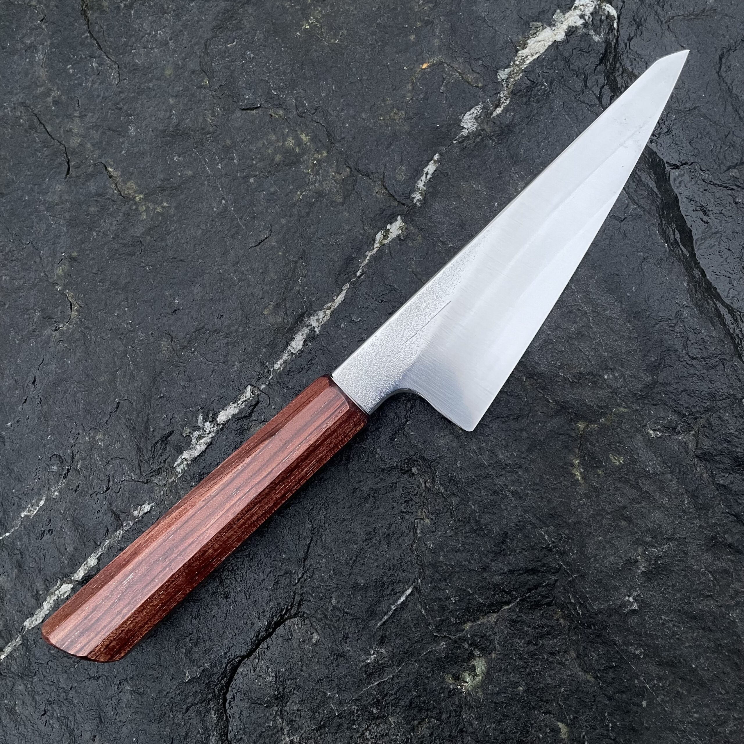 Honesuki je japonský vykosťovací nůž s trojúhelníkovou čepelí, navržený speciálně pro oddělování masa od kostí a porcování drůbeže. Má pevnou, silnou čepel a ostrou špičku pro přesnou práci kolem kloubů. Čepel je vyrobena ze švédské korozivzdorné oceli AEB-L s vysokou tvrdostí 60–61 HRC. Díky tomu má vynikající a trvanlivé ostří. Nůž však není určený ke sekání kostí ani zmražených potravin – mohlo by dojít k poškození čepele.