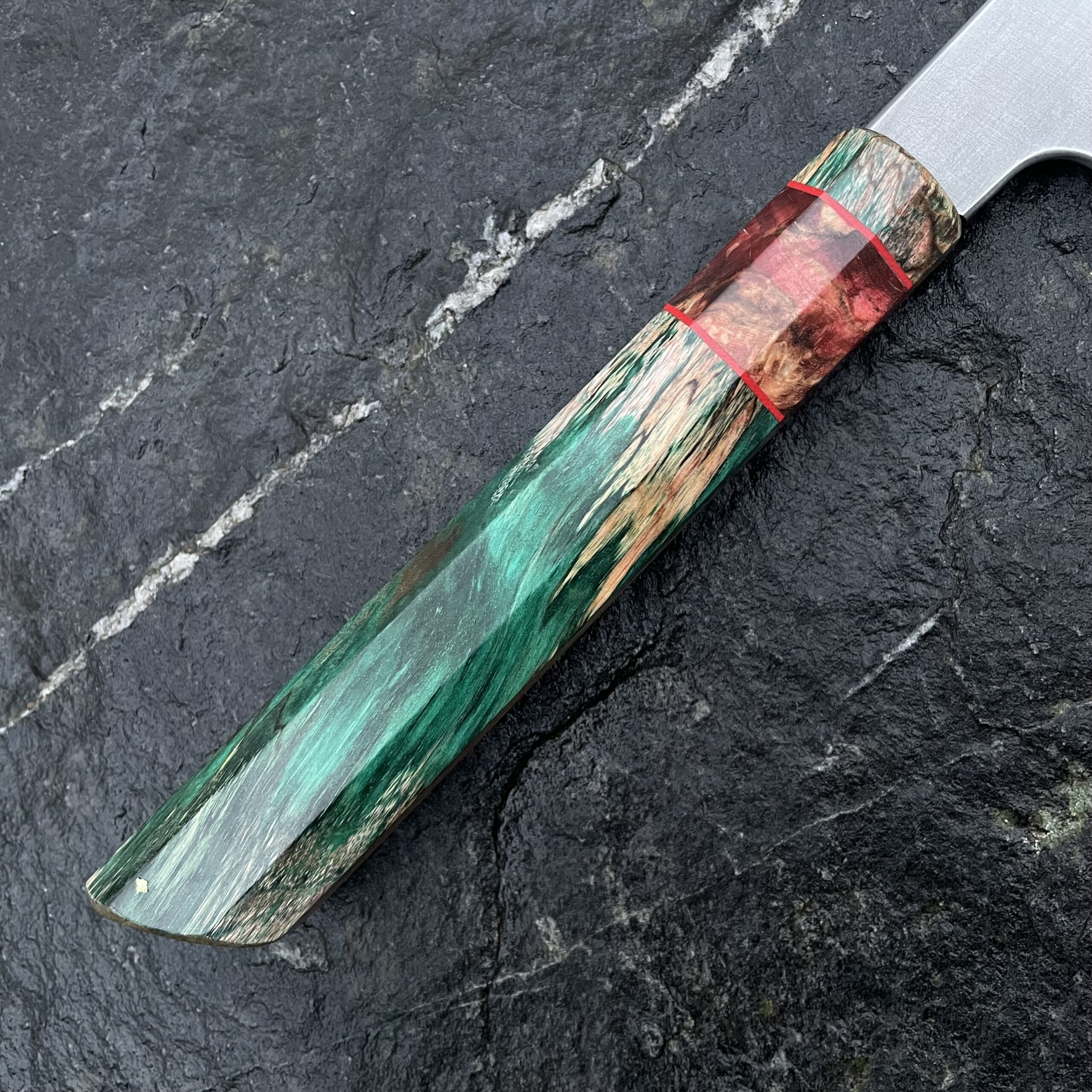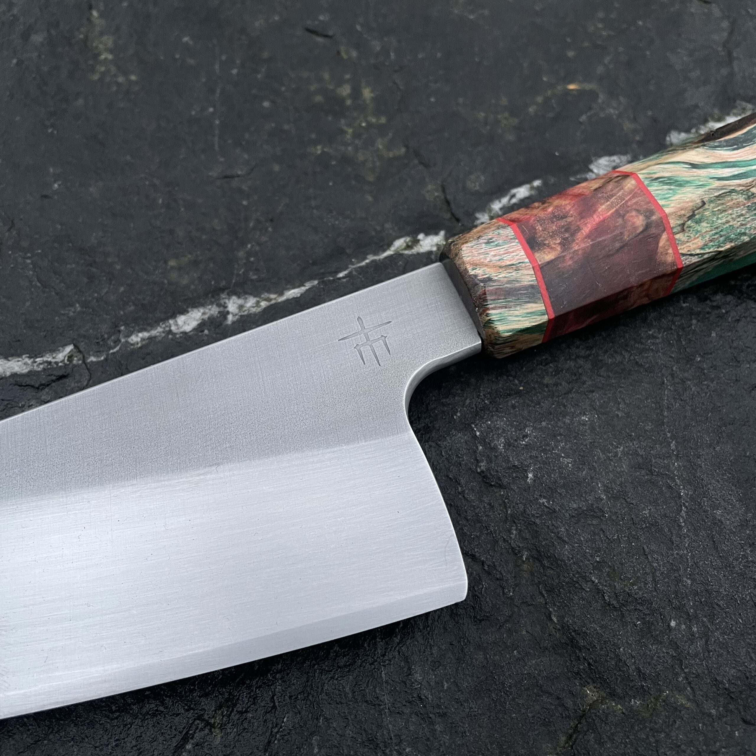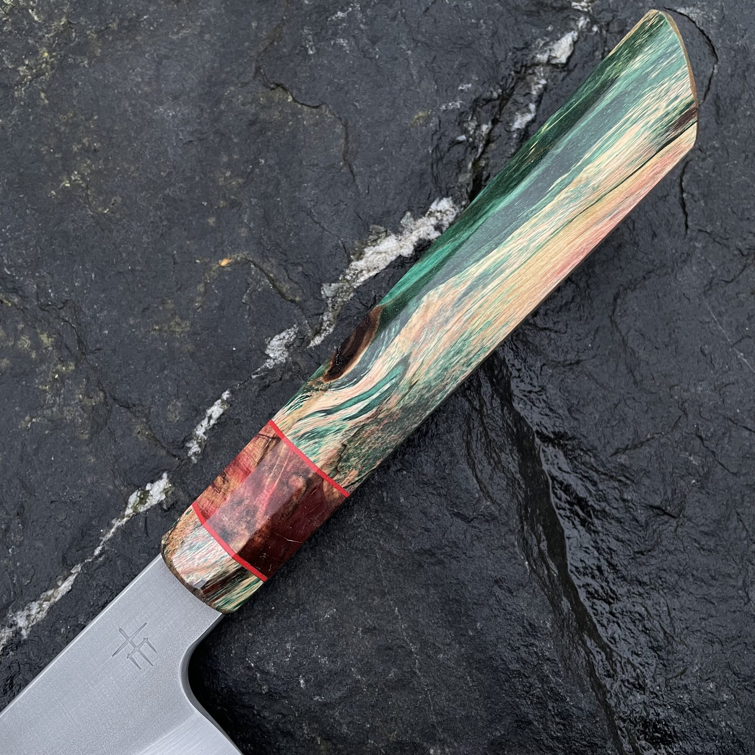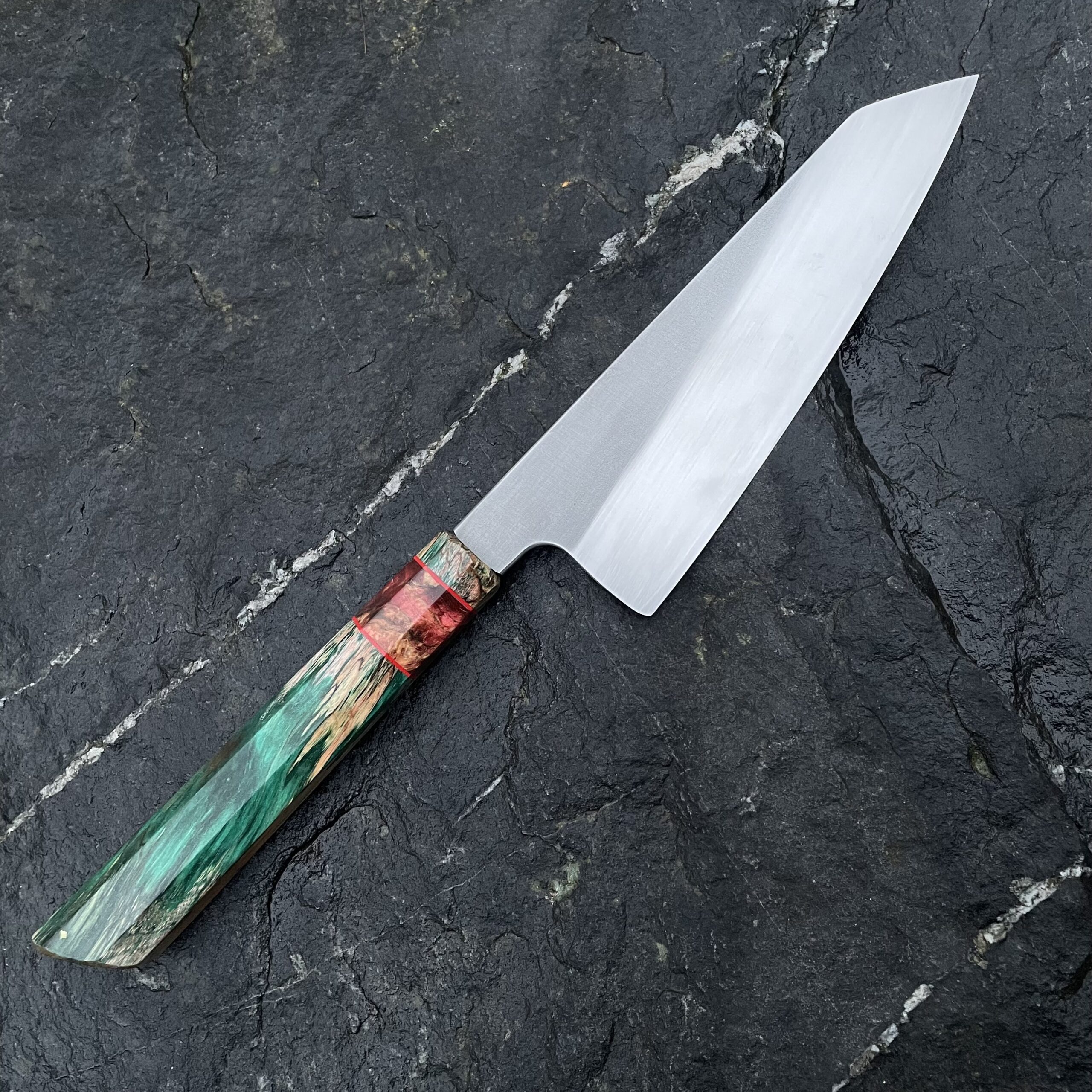 Kiritsuke, univerzální kuchyňský nůž pro každodenní použití. Tvar ostří je podobný noži Santoku, má ovšem vyšší a delší profil čepele.