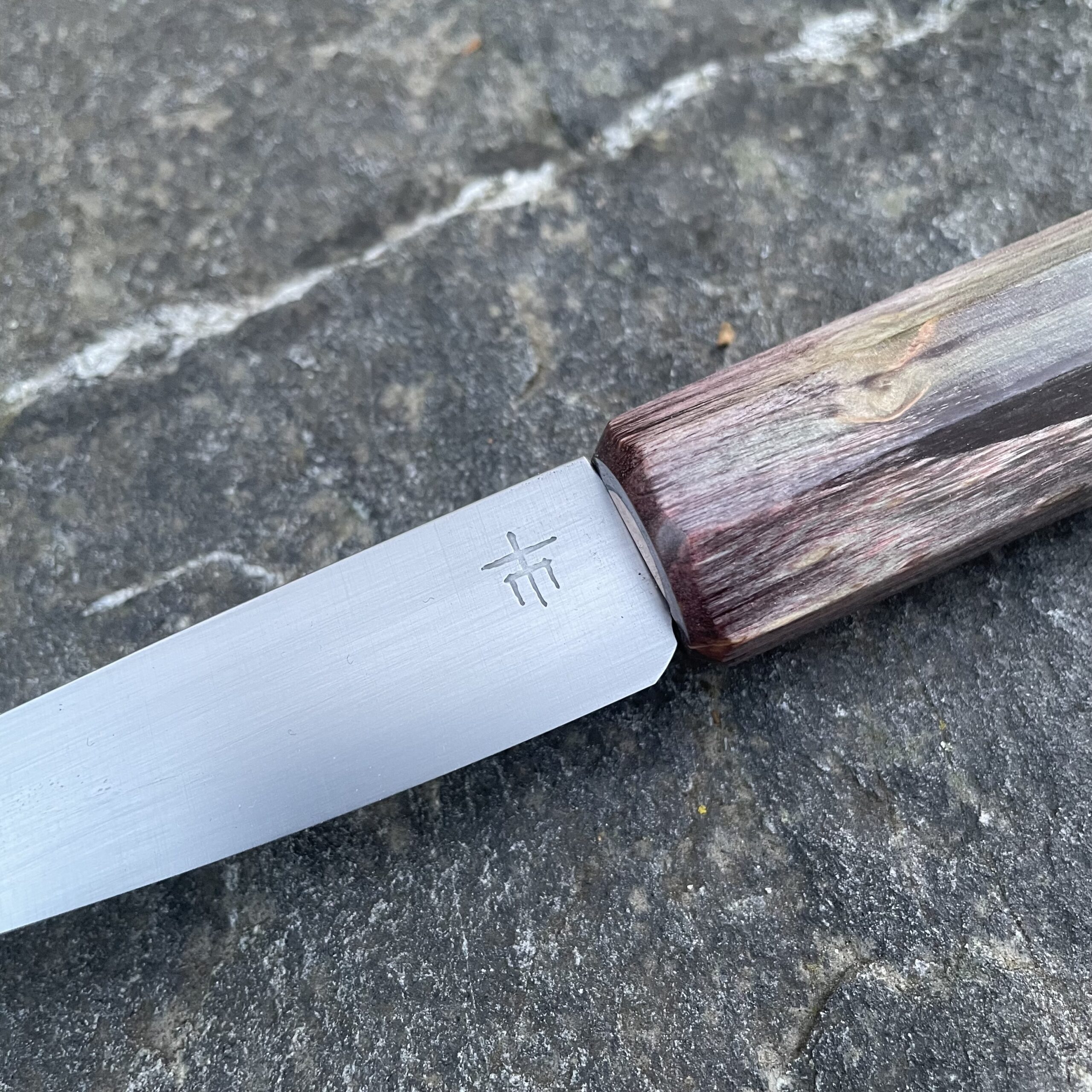 Nůž nevyžaduje žádnou speciální péči, po použití stačí omýt vodou a otřít do sucha. Ostření nože je nejlepší na vodních kamenech, neváhejte mě v případě potřeby kontaktovat.