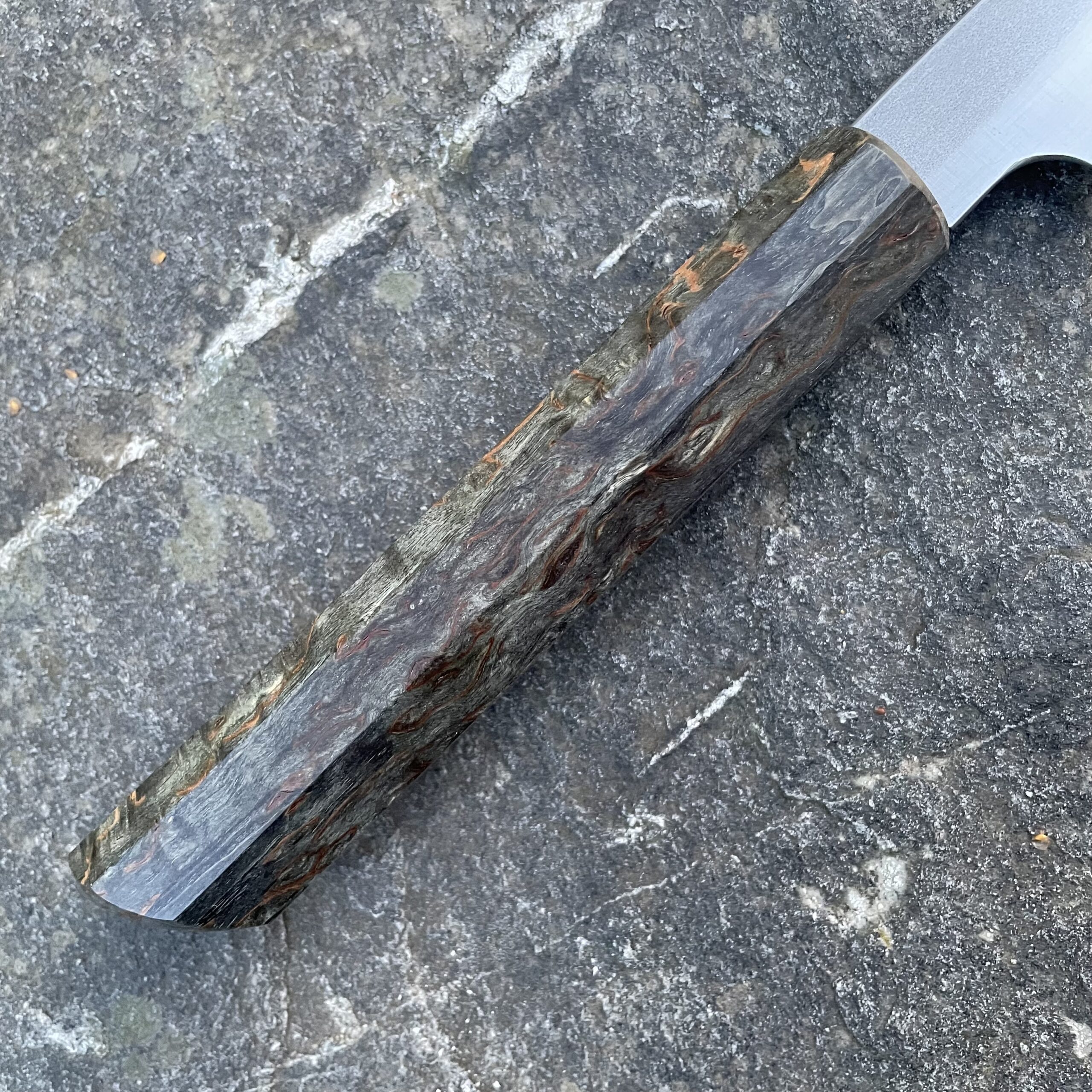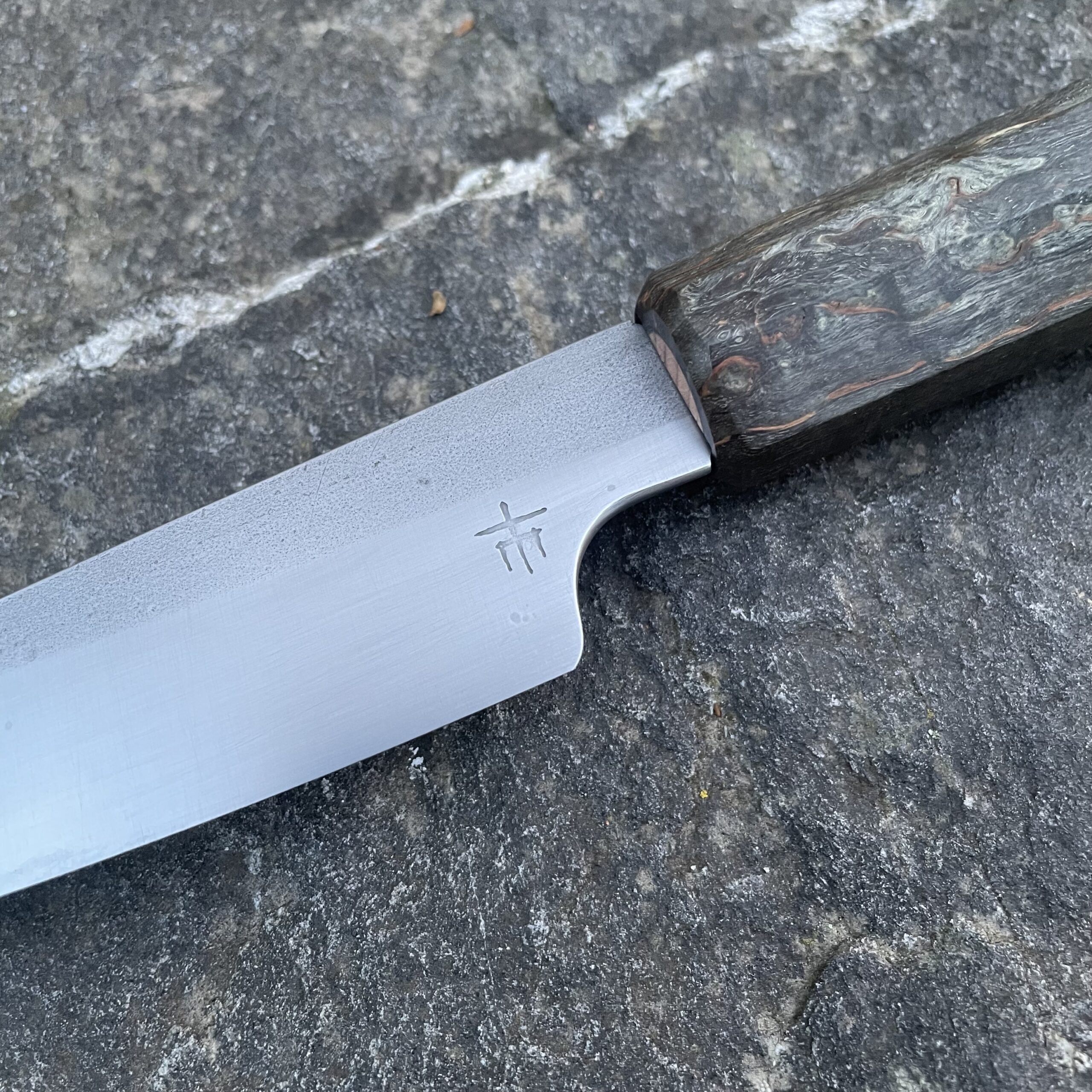 Nůž nevyžaduje žádnou speciální péči, po použití stačí omýt vodou a otřít do sucha. Ostření nože je nejlepší na vodních kamenech, neváhejte mě v případě potřeby kontaktovat.