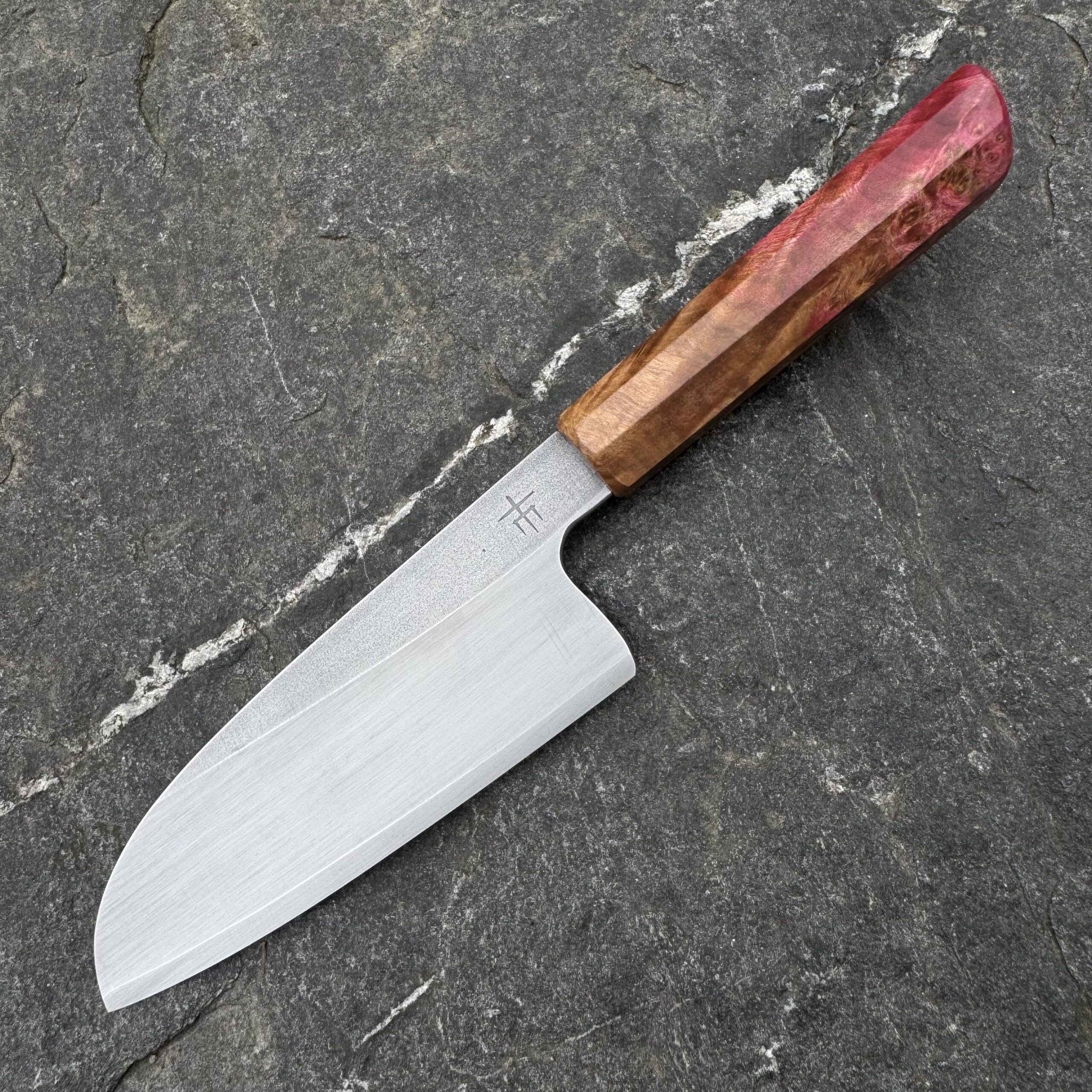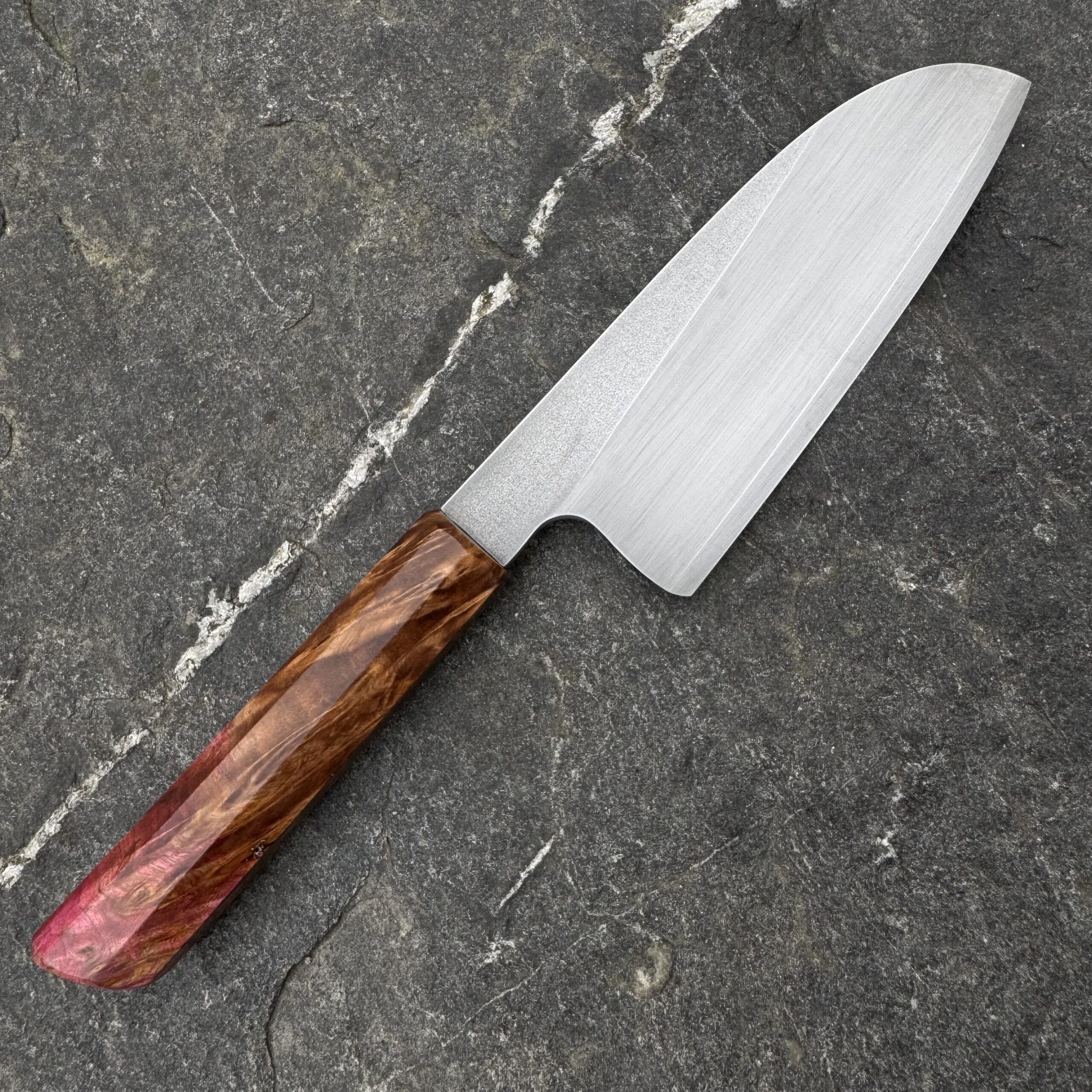 Nůž Santoku je univerzální kuchyňský nůž, který je oblíbený pro svou vyváženost, pohodlnou manipulaci a schopnost zvládat širokou škálu kuchyňských úkolů, jak zpracování zeleniny, tak masa i hub.