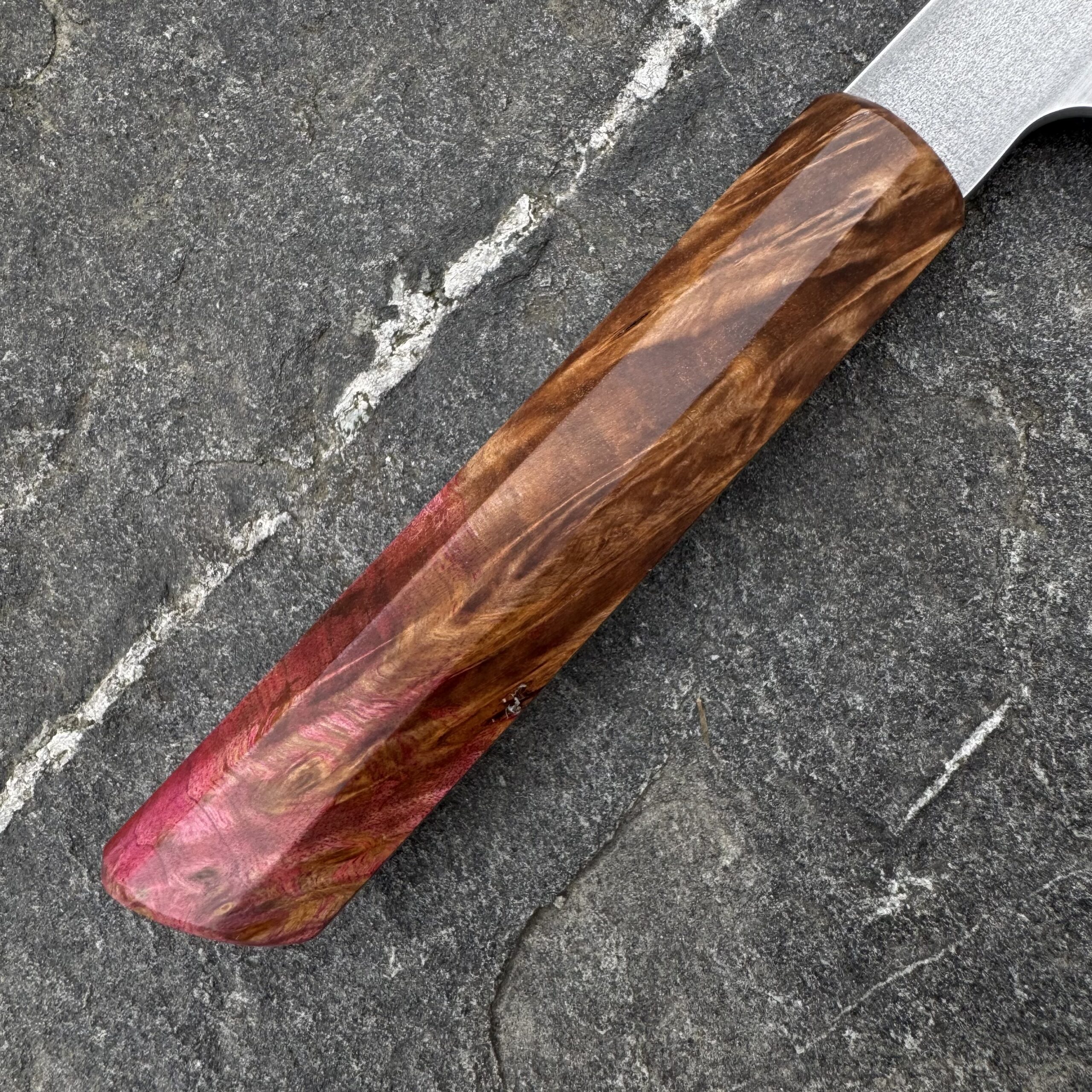 Nůž nevyžaduje žádnou speciální péči, po použití stačí omýt vodou a otřít do sucha. Ostření nože je nejlepší na vodních kamenech, neváhejte mě v případě potřeby kontaktovat.
