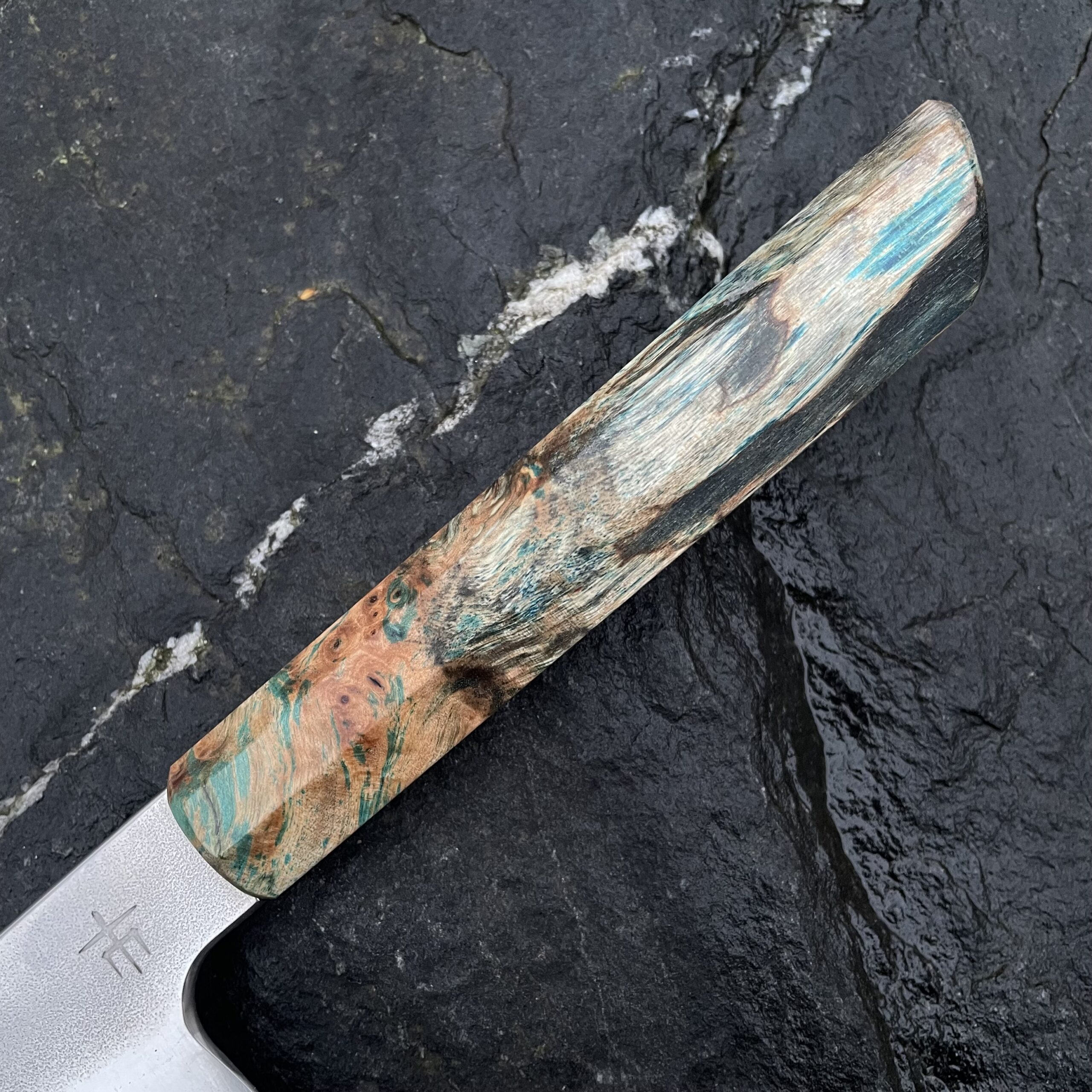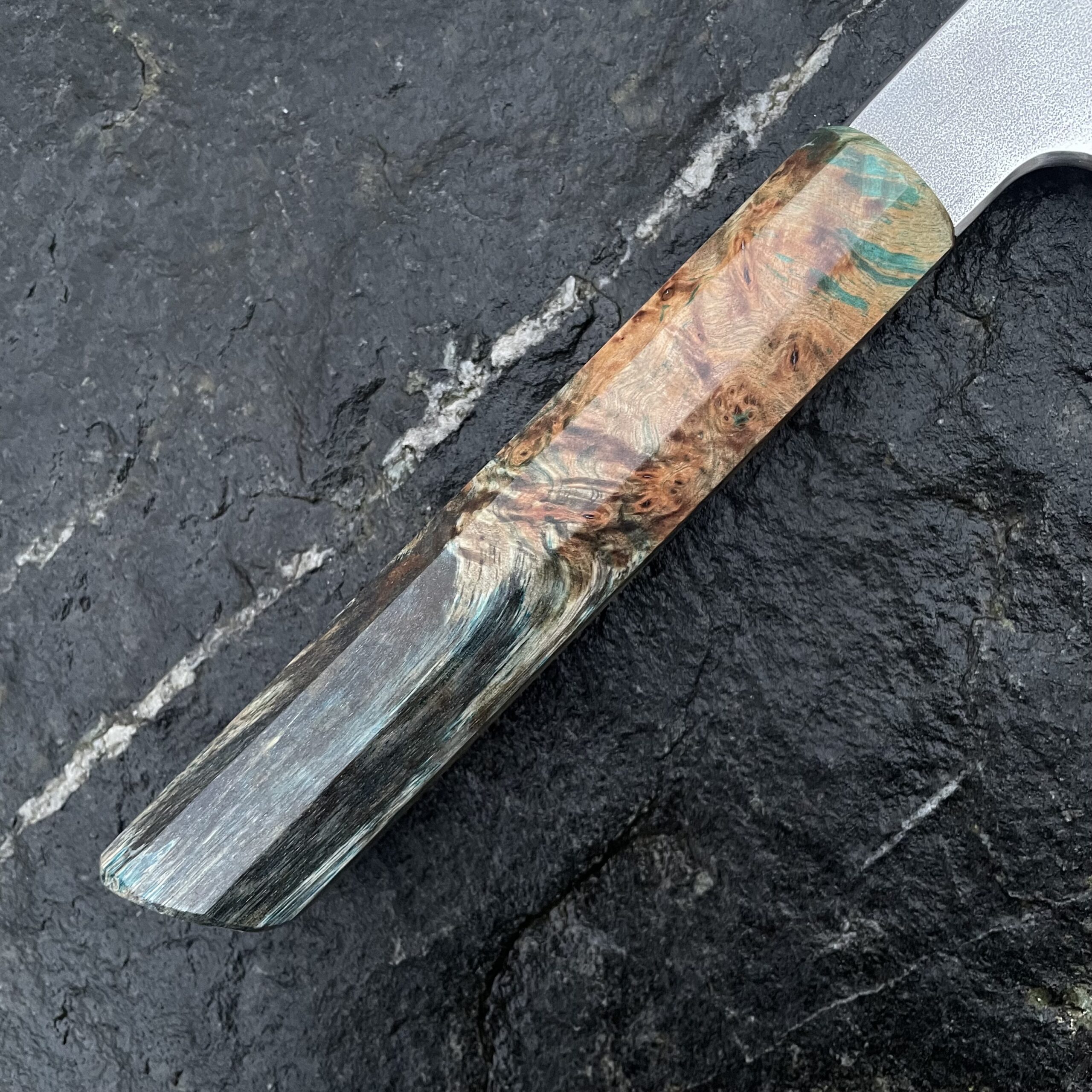 Nůž nevyžaduje žádnou speciální péči, po použití stačí omýt vodou a otřít do sucha. Ostření nože je nejlepší na vodních kamenech, neváhejte mě v případě potřeby kontaktovat.